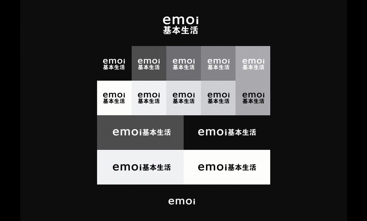 emoi来自于Emotion(情感)和I(我)两个英文单词:“Emotion代表情感,注重给人带来美好的生活感受;I代表我, emoi基本生活相信每个个体的独立性和创新精神。美凯设计基于在这四个字母的基础,多用黑白灰色,还原生活基于生活,符合品牌理念。