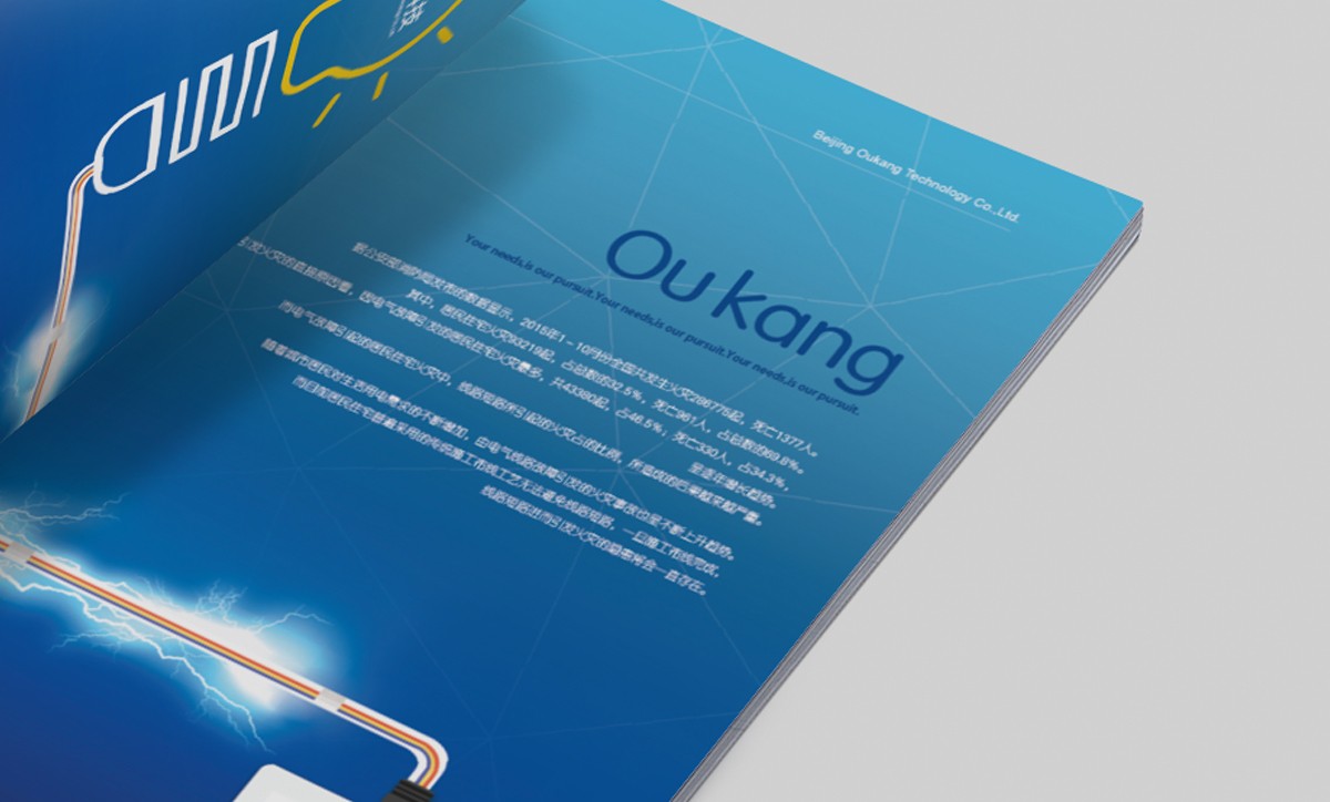 设计中运用了多边菱形的元素,寓意着欧康科技的产品线管,中间穿插着中英文的性能描述,表示欧康的产品包含着这些优质性能。